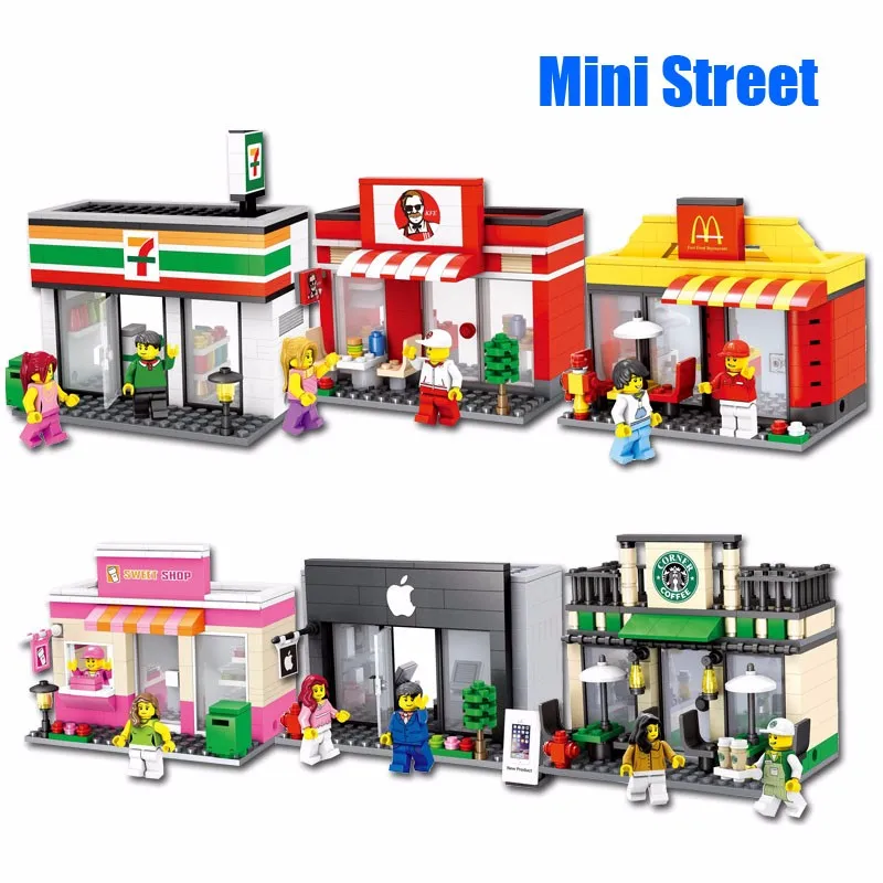 City Series Mini Street Model Store Shop with Mini Toy KFCE McDonald`s Building Block Toys Hsanhe